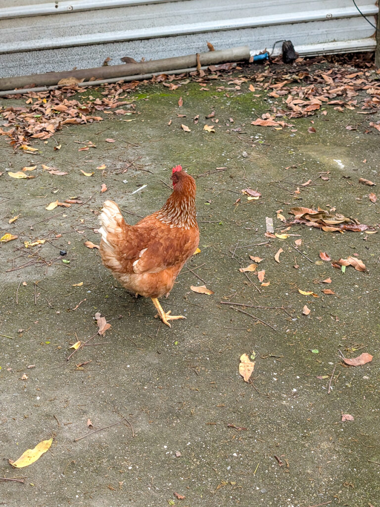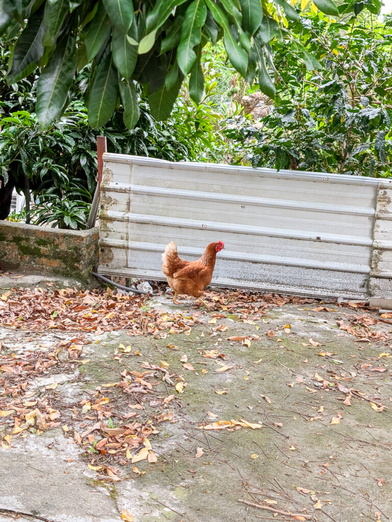 路邊的小斜坡下去,就是阿嬤家了,平常阿嬤家也沒人,有隻雞在這裡大搖大擺的走著,可能是隔壁跑來散步的。